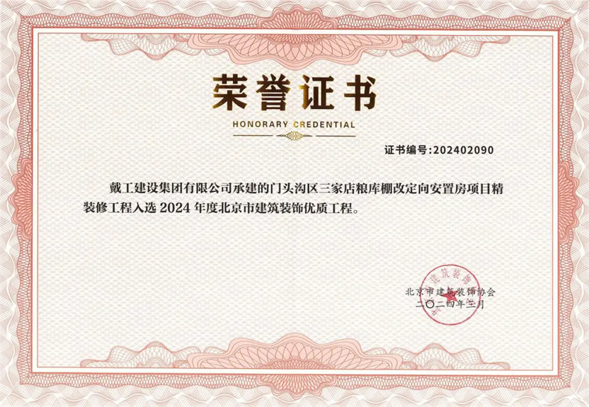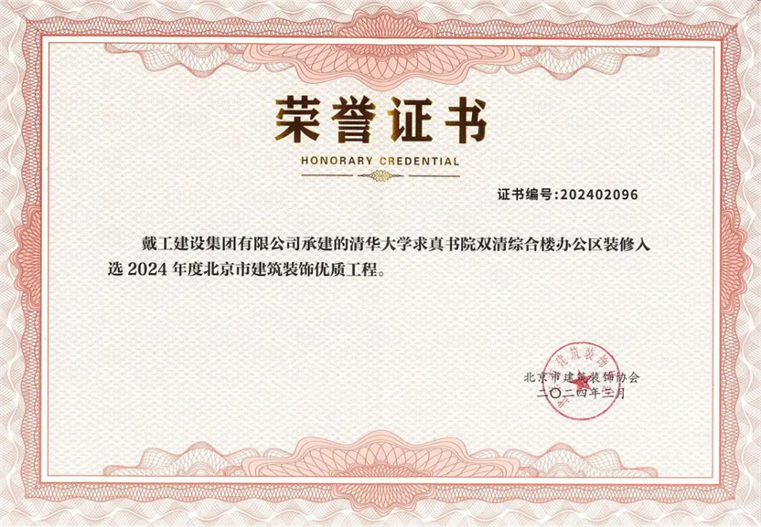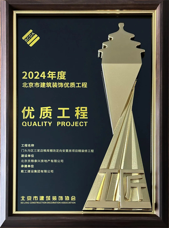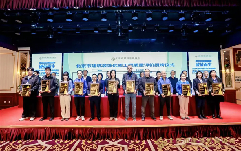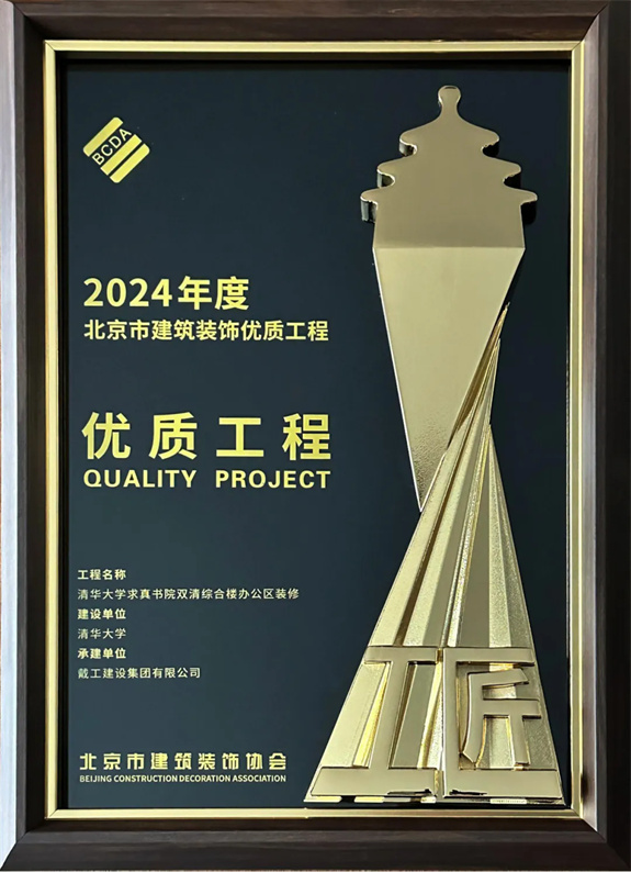 同時(shí),2023-2024年度北京市建筑裝飾優(yōu)質(zhì)工程質(zhì)量評(píng)價(jià)結(jié)果及施工組織設(shè)計(jì)競(jìng)賽也在會(huì)議中公布,戴工集團(tuán)憑借精湛的施工工藝和嚴(yán)格的品質(zhì)把控,所承建的“門(mén)頭溝三家店糧庫(kù)棚改定向安置房項(xiàng)目精裝工程”以及“清華大學(xué)求真書(shū)院雙清綜合樓辦公區(qū)裝修項(xiàng)目”均獲得2024年度北京市建筑裝飾優(yōu)秀工程獎(jiǎng)!