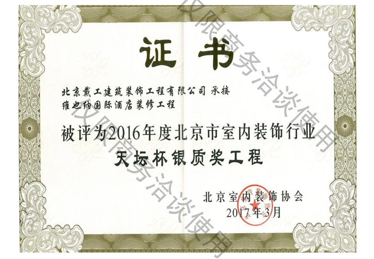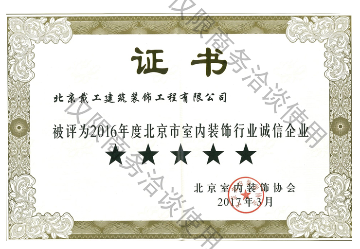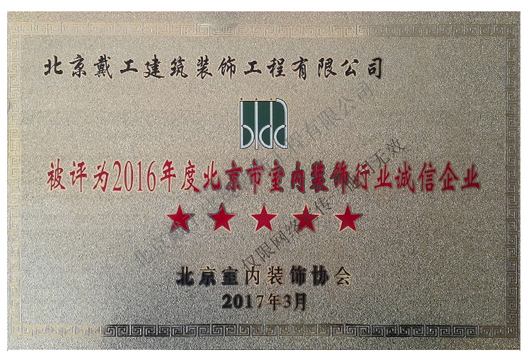 • 2016年度北京市室內(nèi)裝飾行業(yè)誠信企業(yè)