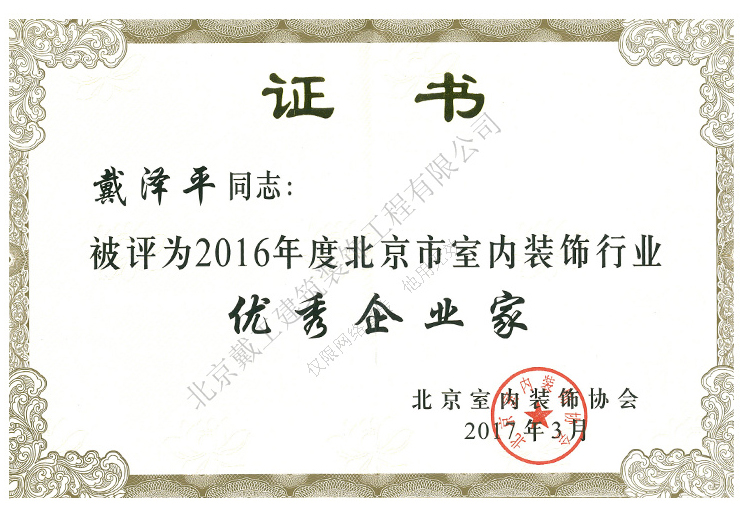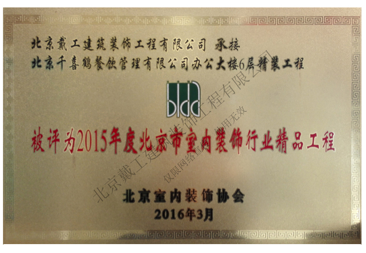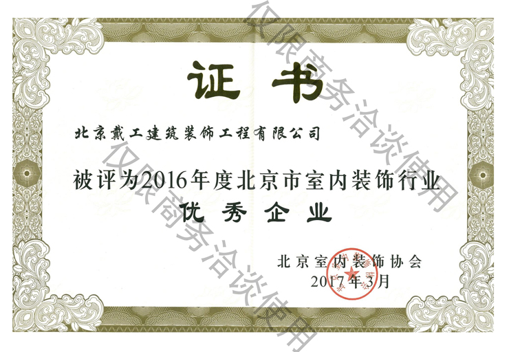 • 2016年度北京市室內(nèi)裝飾行業(yè)優(yōu)秀企業(yè)